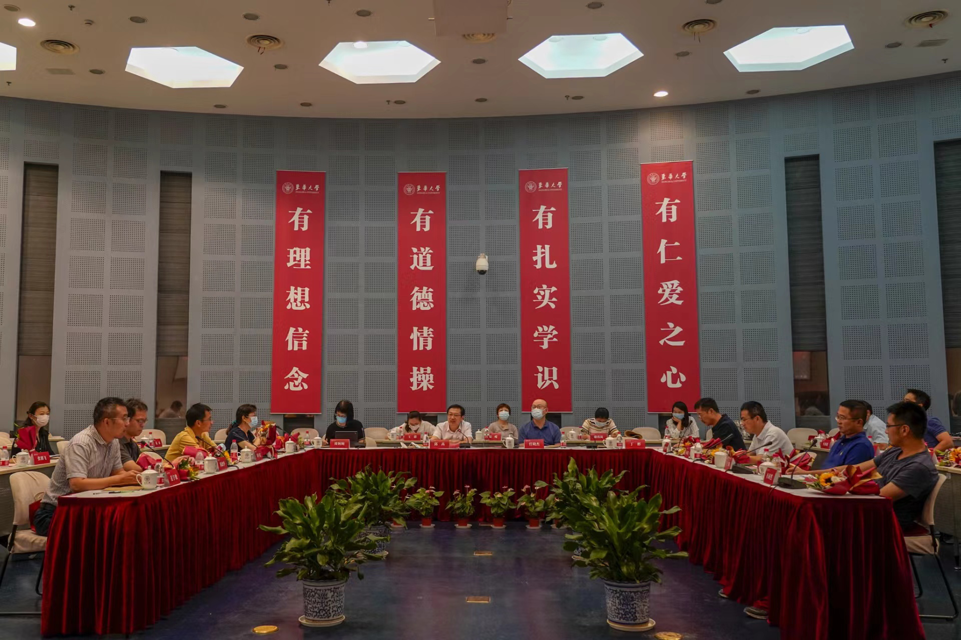 9月9日,在第三十八个教师节即将到来之际,学校以“迎接党的二十大  培根铸魂育新人”为主题,在两校区以线上线下的形式开展教师节慰问座谈活动。党委书记刘承功,校长俞建勇,党委副书记刘淑慧,副校长邱高、李炜出席活动,向全体教职工致以节日问候和诚挚敬意,相关学院部处负责人共同参加。刘淑慧、邱高分别在两校区主持活动。